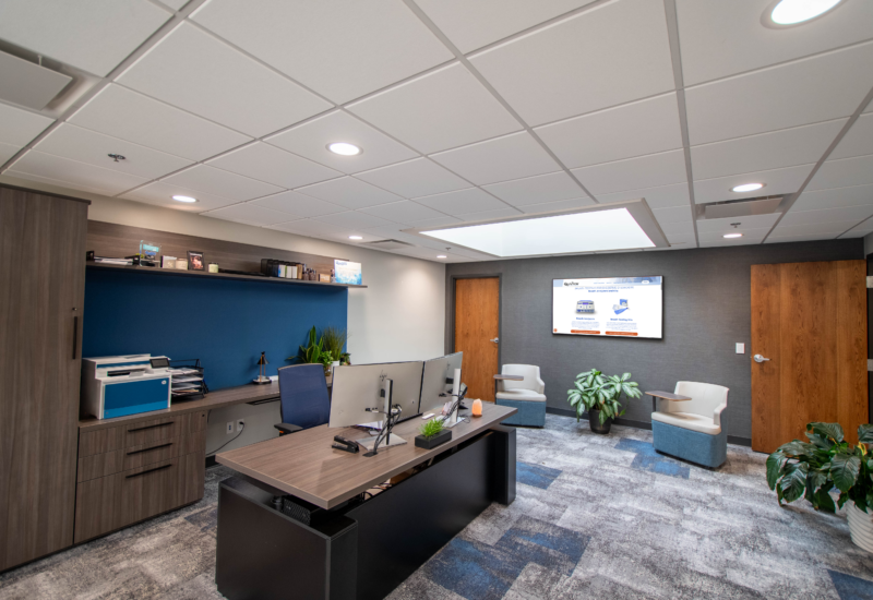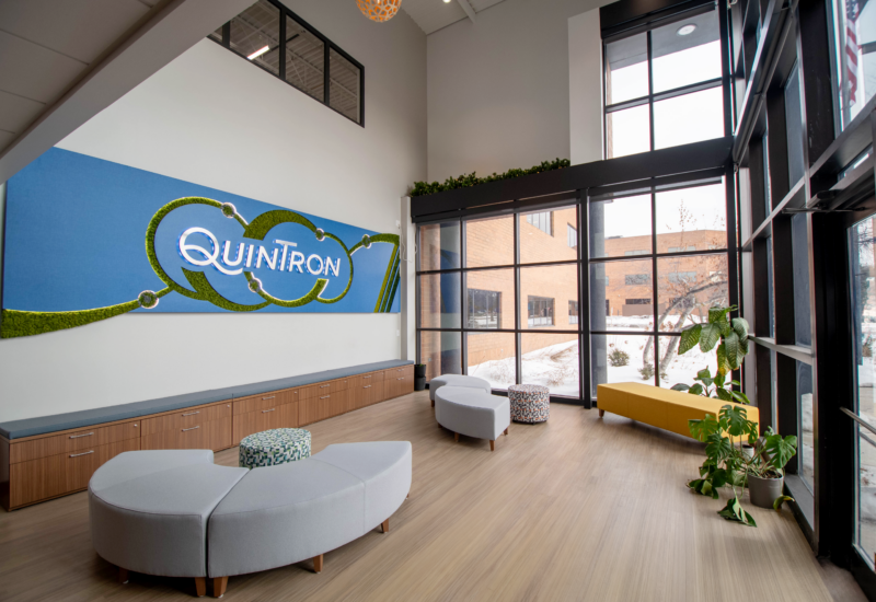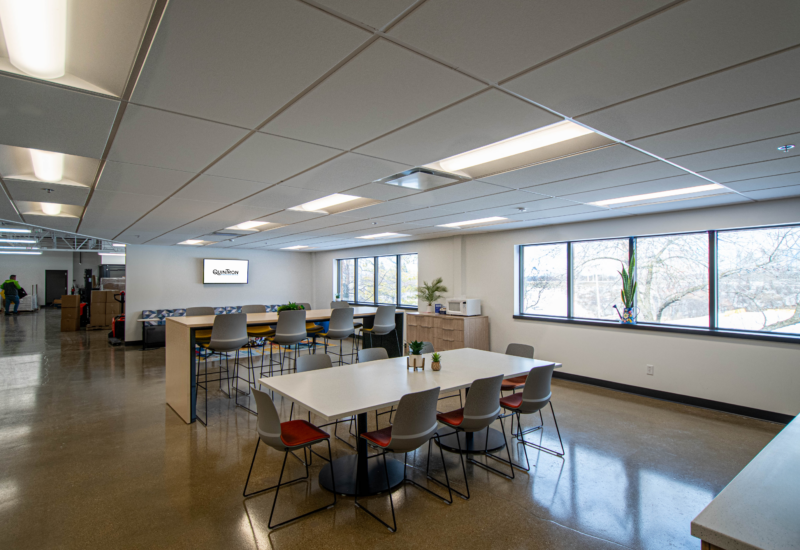 We partnered with QuinTron Instrument Company to refresh and modernize their new global headquarters in New Berlin, Wisconsin. With over 65 years of leadership in non‑invasive breath testing, QuinTron needed an interior environment that reflected its scientific expertise, supported collaboration, and elevated the team’s daily experience. The resulting renovation delivers a professional, efficient, and forward‑looking workspace aligned with their mission and long‑term vision as a trusted global medical device manufacturer.