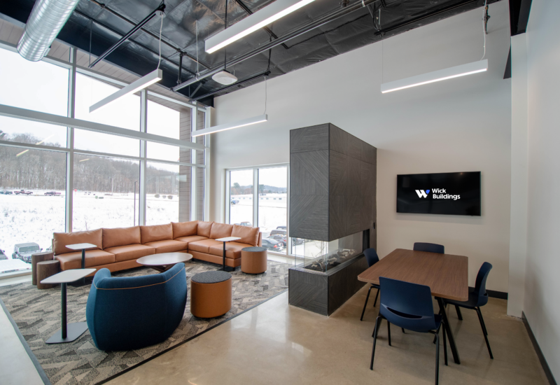 Wick Buildings, a national leader in post‑frame construction with more than 79,000 buildings completed since 1954, is building its next‑generation headquarters and production facility in Mazomanie, WI. Together, BSI and SMART SPACES transformed Wick Buildings’ goals into a cohesive workspace centered on talent attraction, operational excellence, intuitive technology, stronger employee experience, and cultural warmth—including dog‑friendly spaces.